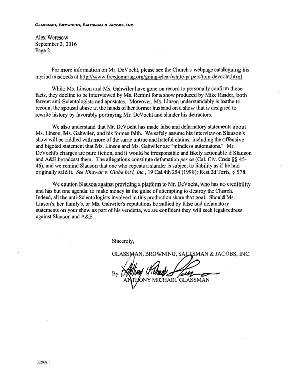 “Ms. Linson is not surprised that Mr. DeVocht, who for years took advantage of her family’s prominence and wealth, again is trying to extract money by using his former wife and family in light of his inability to make a living. Ms. Gahwiler, on the other hand, is surprised that Mr. DeVocht would speak about her publicly considering he chose to barely have a relationship with her or her family when he was in the Church.”